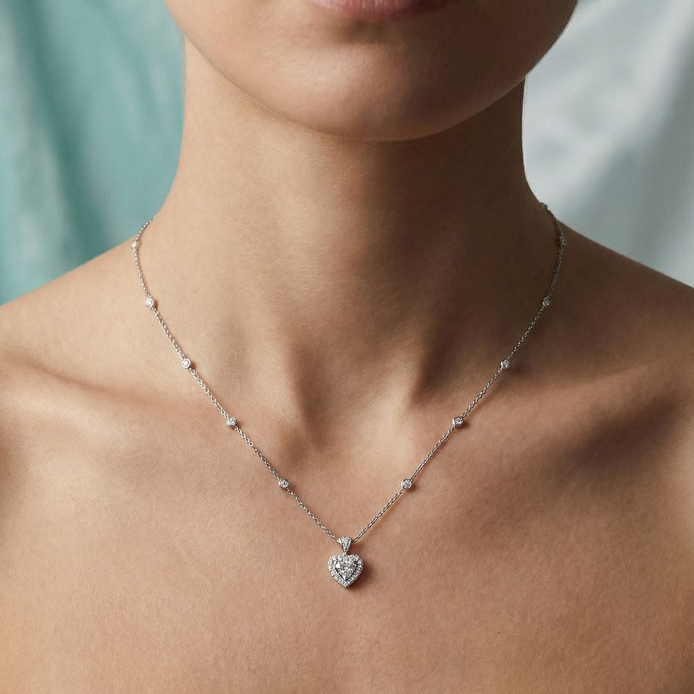 - Tôn vinh xương quai xanh: Sợi dây thanh mảnh kết hợp mặt tim 18ly tập trung sự chú ý vào vùng xương quai xanh, tạo cảm giác thanh thoát và gợi cảm.