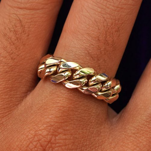 Nhẫn mắt xích mang phong cách trẻ trung, cá tính và năng động, thường có bản nhẫn dày, nổi khối rõ ràng. Kiểu nhẫn này phù hợp với: