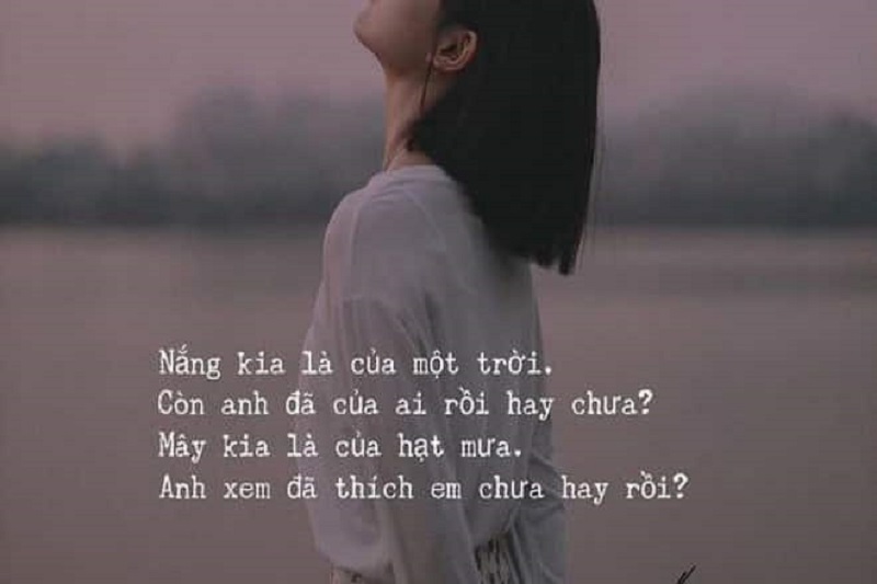 - Nắng kia là của mặt trời. Còn em đã thích ai rồi hay chưa? Mây kia là của trời mưa. Em xem đã thích anh chưa hay rồi?
