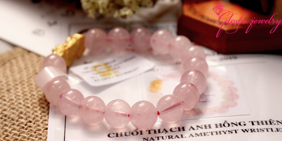 Vòng Tay Phong Thủy Thạch Anh Hồng 9Ly Đã Kiểm Định